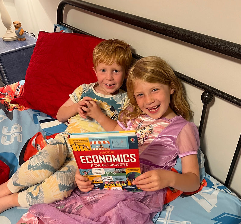 Financial literacy starts at home. Here are two of my children with one of their favorite books we’ve been reading. As a parent, one of my goals has been to teach my kids about society, economics and how to be good stewards of the earth. These can be complicated topics to discuss with young children and they don’t hold back on the tough questions, but I love to see their little minds think through complex concepts with no preconceptions or jaded ideas.