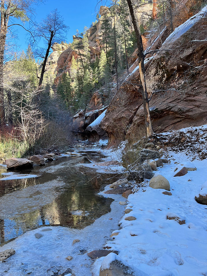 The hike into the canyon was mostly flat and had yet another different vibe. There was snow in the cooler part of the canyon, so we took a little extra caution, but it was not too slippery.