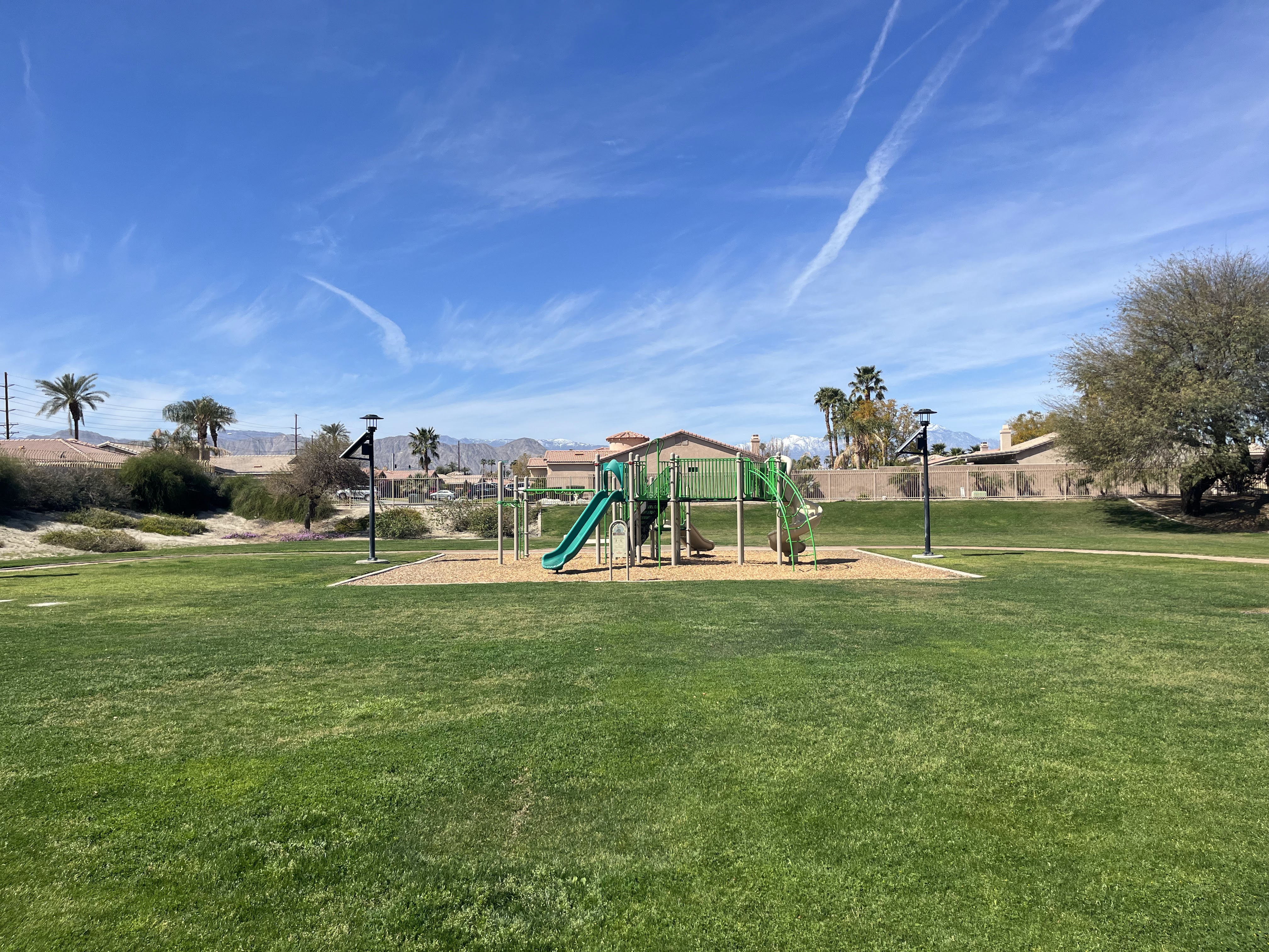 There is a playground at the corner of Calle Diamante and Avenue 48. There is another one across Avenue 48 near the Hjorth Street intersection (Hjorth Park, or “the dog park” as the kids refer to it as, given the dog statue). Dominguez Park (6 minute drive has a splash pad. There’s also a playground in Old Town La Quinta that the kids enjoy (usually before or after ice cream from Nitrofusions). Check out a list of Indio Parks.