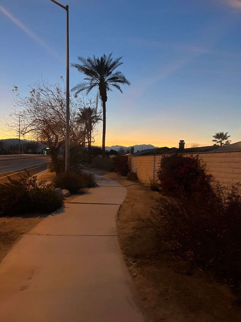 If you’re looking for a good route for a morning walk, you can walk to the polo grounds that host famous festivals like Coachella and Stagecoach. Head south on Calle Diamante, then take a right on Avenue 48, then a left onto Hjorth Street.We usually continue on Hjorth until we hit Mountain Vista Elementary School, then turnaround and it takes us about an hour (with kids in tow). Avenue 48 is a busy street, but Hjorth has much less traffic. We have seen some of the most gorgeous sunsets while walking this area.